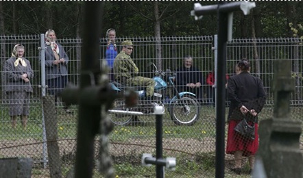 10.Những người phụ nữ đang đứng trong một ngôi làng Norviliskes của Lithuanian để nói chuyện với người thân của họ thông qua hàng rào ở biên giới giữa Belarusian và Lithuanian