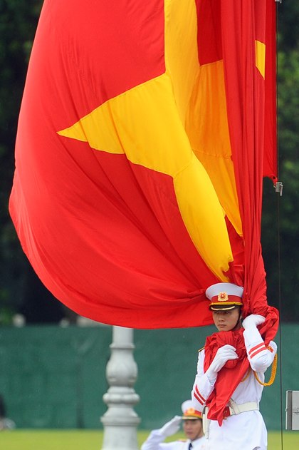...và cờ được tung ra, bay lên theo tiếng Quốc ca.