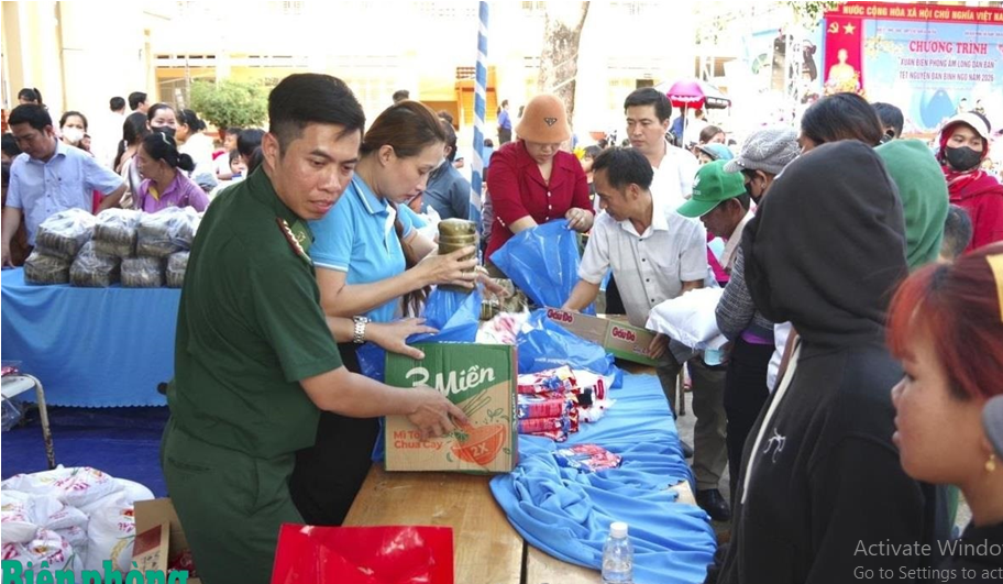 - Trong không khí rộn ràng chuẩn bị đón Tết Nguyên đán Bính Ngọ 2026, các đơn vị Bộ đội Biên phòng trên khắp các tuyến biên giới, biển đảo đã và đang phối hợp chặt chẽ với cấp ủy, chính quyền địa phương cùng các tổ chức, đoàn thể triển khai nhiều hoạt động ý nghĩa, thiết thực để chăm lo đời sống vật chất, tinh thần cho đồng bào các dân tộc. Những việc làm ấm áp, nghĩa tình ấy không chỉ góp phần mang mùa xuân ấm áp đến với nhân dân nơi biên cương, mà còn thể hiện sâu sắc sự tri ân của người lính quân hàm xanh đối với đồng bào đã luôn tin yêu, gắn bó, đồng hành cùng Bộ đội Biên phòng trong sự nghiệp bảo vệ chủ quyền lãnh thổ, an ninh biên giới quốc gia.