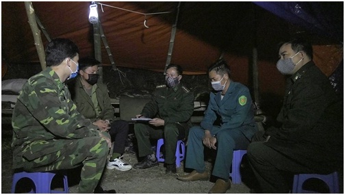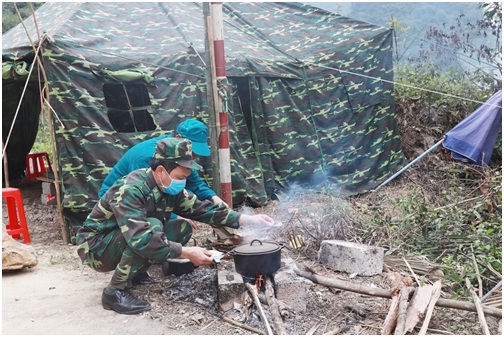 BĐBP Lào Cai lập nhiều lán trại dã chiến, phối hợp với lực lượng dân quân trực 24/24 giờ tại các đường mòn, lối mở trên biên giới. Ảnh: Văn Chung.
