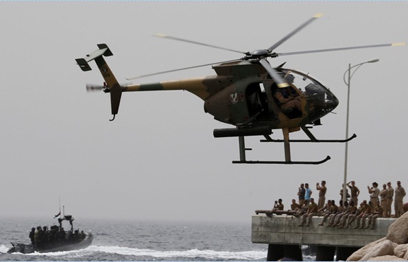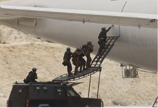 Lực lượng đặc nhiệm Jordan và Mỹ mô phỏng hoạt động đối phó một vụ không tặc trong cuộc tập trận Eager Lion tại thành phố Amman, năm 2012.