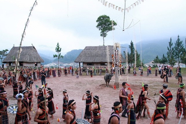 Vào dịp này mỗi gia đình đều chuẩn bị nhiều món ngon, sau lễ đâm trâu, mang đến nhà Gươl góp, tổ chức ăn uống linh đình trong suốt một tuần. Trước ngày đâm trâu, già làng, người có uy tín trong cộng đồng, sẽ tổ chức cúng trâu tại sân Gươl và khấn với Yàng rằng mọi việc đã chuẩn bị xong xuôi, ngày mai xin Yàng cho dân làng đâm trâu. Cả làng múa hát vui vẻ đến khuya còn người già thường thức đến sáng để tế, khóc trâu (nơơi). Màn khóc trâu thưởng được mở đầu bằng câu: ”Trâu ơi, giờ trâu đã buộc vào neo, biết gỡ vào đâu…". Tục lệ khóc tế trâu thường nói lên tình cảm nhớ thương, thương tiếc vì đã hi sinh con vật đã suốt đời gắn bó, phục vụ con người, nay lại làm vật hiến sinh cúng Yàng.