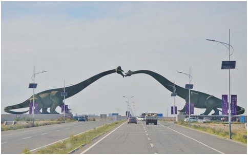 1. Tại biên giới giữa Trung Quốc và Mông Cổ , hai con khủng long hôn nhau trên đường cao tốc. Đó là một biểu tượng của hòa bình, và còn đặc biệt bởi vì khu vực này được biết đến là một trong những cái nôi của cuộc sống của những con khủng long !