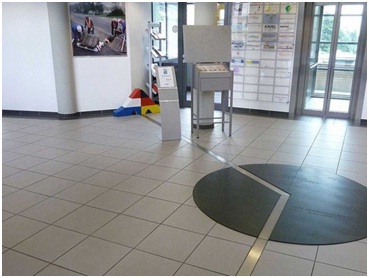 6. Dải kim loại nằm dưới sàn nhà ở Trung tâm Kinh doanh Eurode phân định biên giới Đức và Hà Lan.